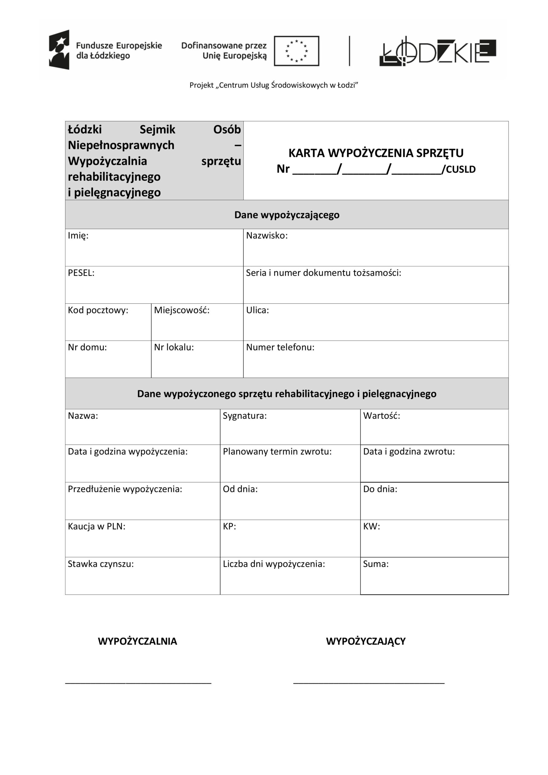 Pełną kartę można pobrać tutaj - KARTA WYPOŻYCZENIA